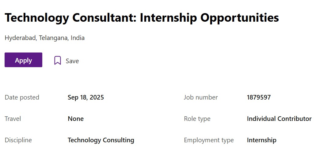 Microsoft Fresher Hiring for Technology Consultant-Internship